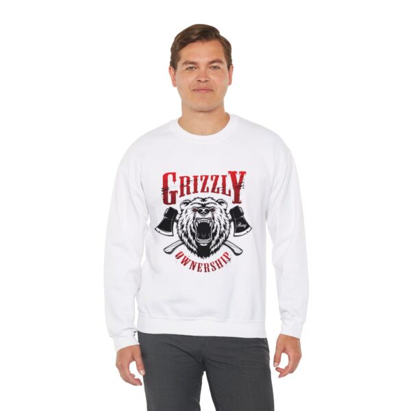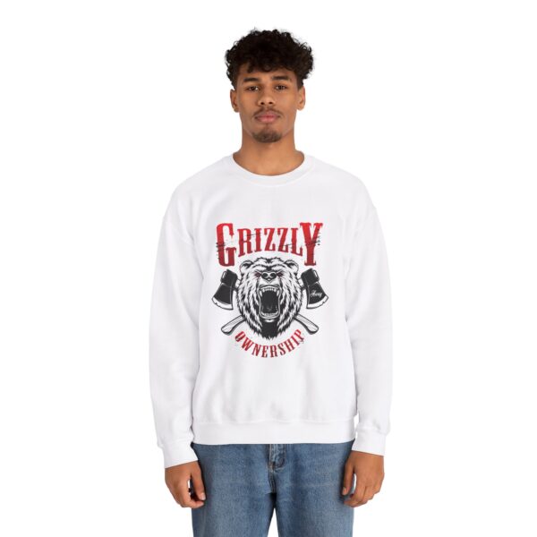 Ideal for any situation, a Grizzly Ownership Unisex Crewneck Sweatshirt is pure comfort. These garments are made from polyester and cotton. This combination helps designs come out looking fresh and beautiful. The collar is ribbed knit, so it retains its shape even after washing. There are no itchy side seams on these sweaters.
