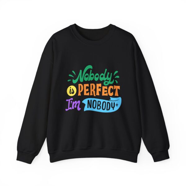 Ideal for any situation, Reflective Dreamz Unisex Sweatshirt – ‘Nobody is Perfect, I’m Nobody’ Graphic Pullover. These garments are made from polyester and cotton. This combination helps designs come out looking fresh and beautiful. The collar is ribbed knit, so it retains its shape even after washing. There are no itchy side seams on these sweaters.