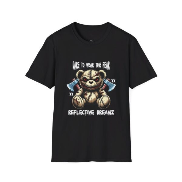 This unisex Softstyle black T-shirt with Reflective Dreamz’s striking and sinister “Dare to Wear the Fear” graphic will embrace your edgy side. Ideal for individuals brave enough to stand out.